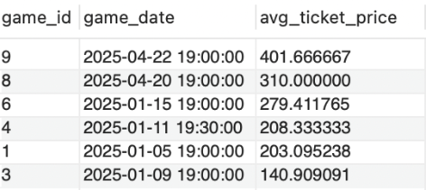 The strength of this relational database is its scalability. Integrating more datasets โ player performance, fan demographics, concession data โ will allow the Grizzlies to operate like a modern, analytics-driven sports business.