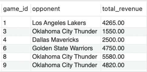 This database was specifically structured to explore several key business questions and operational insights. Primary areas of investigation include revenue analysis across multiple streams, particularly examining the relationship between promotional events (such as giveaway nights) and ticket sales performance, as well as identifying top merchandise sellers to inform marketing and inventory decisions. The system enables analysis of player performance metrics to support coaching decisions and player development strategies, while also tracking injury patterns that impact roster management. Additionally, the database documents the mid-season coaching transition from Taylor Jenkins to Tuomas Iisalo in March 2025, allowing for comparative analysis of team performance under different leadership. The project aims to uncover correlations between various factors, such as opponent strength, promotional activities, and player availability, and their impact on both game outcomes and revenue generation, ultimately providing a framework for data-driven strategic planning within a professional sports organization.